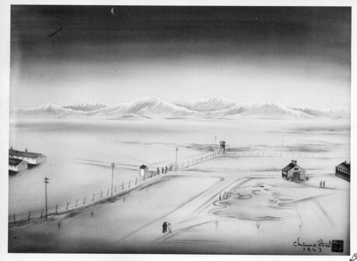 | Keywords: New Moon (Chiura Obata).jpg en New Moon This entry in the art exhibit recently held at Cambridge Massachusetts under sponsorship of the Friends meeting won first prize ARTIST Chiura Obata Central Utah Relocation Center Topaz Utah DATE / /43 -- Cambridge Massachusetts / /43 Volume 35 Section E WRA no B-647 from UC Berkeley Bancroft Library; War Relocation Authority Photographs of Japanese-American Evacuation and Resettlement Series 12 Relocation new homes etc various places 1943 http //content cdlib org/ark /13030/ft6t1nb3t4/ Online Archive of California Chiura Obata other versions PD-USGov Uploaded with UploadWizard Chiura Obata |