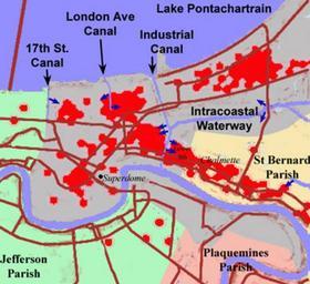 | Keywords: New-Orleans-deaths.jpg en wikipedia 2012 May 31 map en Sketch Map showing Katrina deaths in New Orleans and adjacent parishes red dots and principal canal levees/floodwalls which were breached Red dots for deaths come from http //www nola com/hurricane/katrina/pdf/102305/1023A01 pdf The Times Picayune Dark Blue arrows show levee/flood wall breaches from the above reference and also http //www nola com/hurricane/katrina/pdf/102405/1024A01 pdf this one I used a several references to locate the county boundaries principal roads and the canals Sketch Map drawn by Op Deo October 25 2005 2005-10-25 Own Op Deo wikipedia en en wikipedia Op Deo Original upload log page en wikipedia New-Orleans-deaths jpg 2005-10-25 11 22 Op Deo 387×354 28533 bytes <nowiki>Sketch Map showing Katrina deaths in New Orleans and adjacent parishes red dots and principal canal levees/floodwalls which were breached Red dots for deaths come from http //www nola com/hurricane/katrina/pdf/102305/1023A01 pdf The Times Picayune D</nowiki> 2005-10-25 11 29 Op Deo 387×354 75591 bytes <nowiki> Summary Sketch Map showing Katrina deaths in New Orleans and adjacent parishes red dots and principal canal levees/floodwalls which were breached Red dots for deaths come from http //www nola com/hurricane/katrina/pdf/102305/1023A01 pdf The Time</nowiki> __NOTOC__ Maps of New Orleans Hurricane Katrina aftermath in New Orleans |