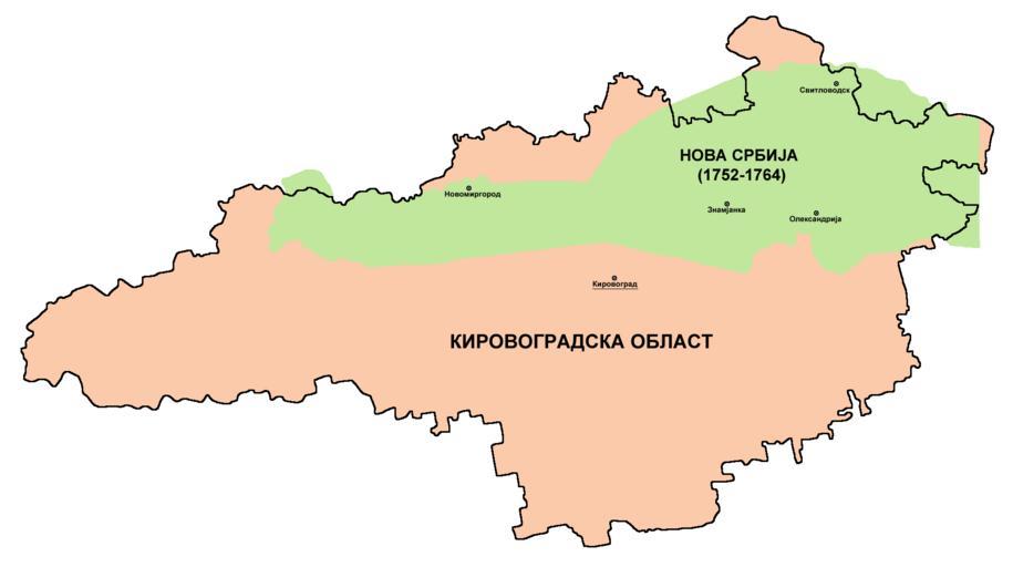 | Keywords: New serbia location map-sr.png en Borders of historical New Serbia 1752-1764 compared with borders of modern Kirovohrad Oblast of Ukraine sr Г анице исто ијске ове С бије 1752-1764 упо еђене са г аницама данашње Ки овог адске области у Ук ајини own PANONIAN 2014 Cc-zero References Mita Kostić Nova Srbija i Slavenosrbija Novi Sad 2001 Olga M Posunjko Istorija Nove Srbije i Slavenosrbije Novi Sad 2002 Pavel Rudjakov Seoba Srba u Rusiju u 18 veku Beograd 1995 http //www rastko rs/rastko-ukr/istorija/img/nova_serbija jpg http //www irekw internetdsl pl/27_1727-1768 jpg http //www jewishgen org/Ukraine/maps/Ukrainian-Land-1750 jpg http //ukrindustrial com/img/regions/pic/14_16_radm_618827615 gif http //www ukrtourism com/UserFiles/Image/Maps/oblast/kirovograd_obl jpg Maps of New Serbia Maps of Kirovohrad Oblast Maps in Serbian |