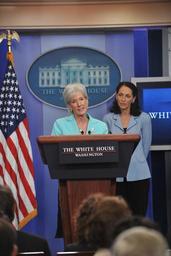 | Keywords: New Tobacco Label Press Conference.jpg en HHS Secretary Sebelius and FDA Commissioner Hamburg spoke at a White House Press Briefing to announce the nine graphic health warnings that will be required to appear on every pack of cigarettes sold in the United States and in every cigarette advertisement beginning in September 2012 This measure is aimed at making sure that every American understands the dangers of smoking HHS Photo by Chris Smith 2011-06-21 14 01 03 http //www flickr com/photos/hhsgov/5857406329/sizes/o/in/photostream/ HHSgov Érico Júnior Wouters 2013-03-23 PD-USGov Uploaded with UploadWizard Kathleen Sebelius Margaret Hamburg |