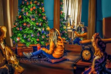 Keywords: new year's eve christmas tree mirror toys holiday clock baby doll girl pillow