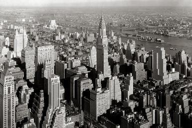 | Keywords: New York City, circa 1932.jpg en The skyline of Manhattan as viewed from the Empire State Building observatory The Chrysler Building Queensboro Bridge and Roosevelt Island are a few of the landmarks visible ppmsca 05841 Samuel Herman Gottscho 1932-01-19 Manhattan skylines New York City in the 1930s Exterior of the Chrysler Building Queensboro Bridge Roosevelt Island Views from the Empire State Building Samuel Gottscho PD-USGov | ||||