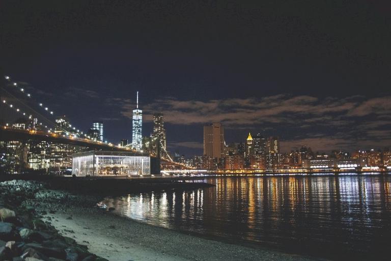 Keywords: new york city night lights landmark new york america urban reflection water river shore bank bridge history manhattan nyc usa