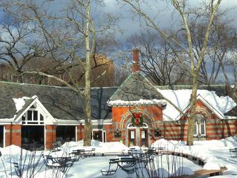 Keywords: new york city tavern on the green restaurant luxurious famous landmark cuisine winter snow ice urban city cities outside