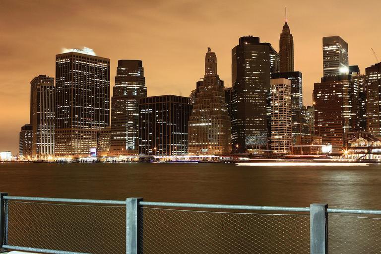 Keywords: new york new york city city manhattan manhattan island wall street downtown skyline architecture tower building night lights river