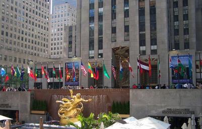 Keywords: new york rockefeller center flags gold statue nyc city buildings