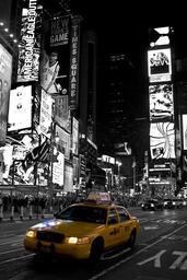 Keywords: new york time square black white yellow cab travel building black cab street city square