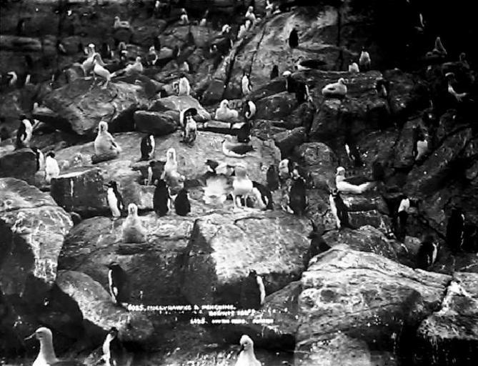 Keywords: New Zealand, Bounty Islands, 1888 (2).jpg nl Salvins albatrossen Thalassarche salvini en Grote Kuifpinguïns Eudyptes sclateri op de Bounty-eilanden Nieuw Zeeland en Salvin's Albatrosses Thalassarche salvini and Erect Crested Penguïns Eudyptes sclateri on the Bounty Islands New Zealand The picture is a black and white gelatin glass negative from 1888 Online collections of the Museum of New Zealand Te Papa Tongarewa at http //collections tepapa govt nz/ William Dougall photographer 1888 The author William Dougall died around 1920 which is more than 70 years ago Also the website of the Museum of New Zealand from which this picture was taken explicitly states that this photo has No known copyright restrictions 47 45 4 37 S 179 1 25 54 E region NZ Thalassarche salvini Eudyptes sclateri Bird colonies Gelatin dry plate process Bounty Islands PD-old-70-1923 |