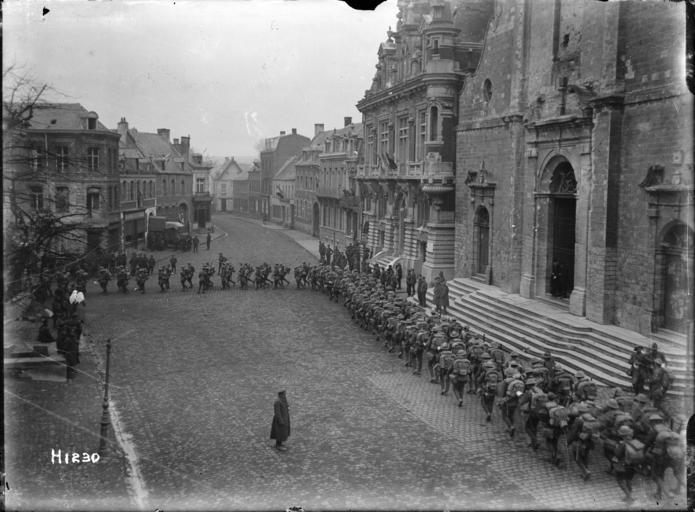 | Keywords: the great war thegreatwar great war greatwar world war one worldwarone world war i worldwari wwi first world war firstworldwar new zealand expeditionary force newzealandexpeditionaryforce nzef solesmes soldiers blackandwhite monochrome road outdoor black and white New Zealand Division leaving the town of Solesmes, France, after the armistice ending World War I. Shows rows of troops marching along a cobbled street. Photograph taken ca late November 1918 by Henry Armytage Sanders. Inscriptions: Inscribed - Photographer's title on negative -bottom left: H1230. Quantity: 1 b&w original negative(s). Physical Description: Dry plate glass negative 4 x 5 inches New Zealand Division leaving the town of Solesmes, France, after the armistice ending World War l. Royal New Zealand Returned and Services' Association :New Zealand official negatives, World War 1914-1918. Ref: 1/2-013777-G. Alexander Turnbull Library, Wellington, New Zealand. natlib.govt.nz/records/22794663 New Zealand Division leaving the town of Solesmes, France, after the armistice ending World War I. Shows rows of troops marching along a cobbled street. Photograph taken ca late November 1918 by Henry Armytage Sanders. Inscriptions: Inscribed - Photographer's title on negative -bottom left: H1230. Quantity: 1 b&w original negative(s). Physical Description: Dry plate glass negative 4 x 5 inches New Zealand Division leaving the town of Solesmes, France, after the armistice ending World War l. Royal New Zealand Returned and Services' Association :New Zealand official negatives, World War 1914-1918. Ref: 1/2-013777-G. Alexander Turnbull Library, Wellington, New Zealand. natlib.govt.nz/records/22794663 |