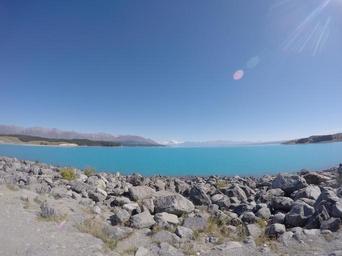 Keywords: new zealand go-pro lake pond mountains wide nature rocks blue lens flare outdoor