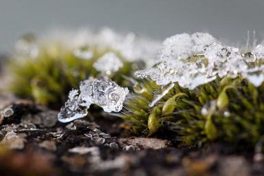 Keywords: new zealand moss winter snow cold transition autumn frozen melted crystals green white transparent nature plant flora