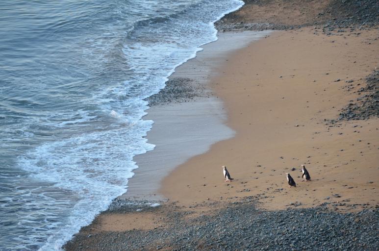 Keywords: new zealand oamaru otago yellow eyed penguin colony bushy beach road south hill aotearoa penguin bird beach wave water