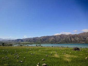 Keywords: new zealand pasture cattle mountains landscape wool meadow agriculture sheep blue animals flock of sheep sheep's wool flock herd animal nature animal world fur grass schäfchen group white head soft young animals