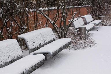 Keywords: new zealand snow park bench park benches waste bins park public white frozen cold metal steel grid