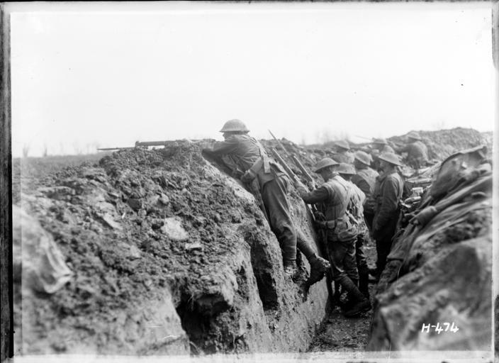 | Keywords: blackandwhite monochrome photo border black and white New Zealand soldiers in the front line on the Somme, La Synge Farm, France, 6 April 1918. Shows soldiers in a trench. Sergeant Ormond Burton stands on a firing step in the trench wall. Photograph taken by Henry Armytage Sanders. Inscriptions: Inscribed - Photographer's title on negative -bottom right: H474. Quantity: 1 b&w original negative(s). Physical Description: Dry plate glass negative 4.75 x 6.5 inches New Zealand soldiers in the front line on the Somme, La Synge Farm, France. Royal New Zealand Returned and Services' Association :New Zealand official negatives, World War 1914-1918. Ref: 1/2-013092-G. Alexander Turnbull Library, Wellington, New Zealand. natlib.govt.nz/records/22775563 New Zealand soldiers in the front line on the Somme, La Synge Farm, France, 6 April 1918. Shows soldiers in a trench. Sergeant Ormond Burton stands on a firing step in the trench wall. Photograph taken by Henry Armytage Sanders. Inscriptions: Inscribed - Photographer's title on negative -bottom right: H474. Quantity: 1 b&w original negative(s). Physical Description: Dry plate glass negative 4.75 x 6.5 inches New Zealand soldiers in the front line on the Somme, La Synge Farm, France. Royal New Zealand Returned and Services' Association :New Zealand official negatives, World War 1914-1918. Ref: 1/2-013092-G. Alexander Turnbull Library, Wellington, New Zealand. natlib.govt.nz/records/22775563 |