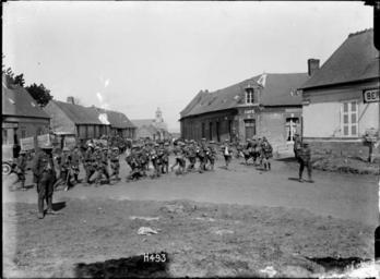 | Keywords: blackandwhite monochrome outdoor architecture building road black and white A general view of New Zealand troops passing through the French village of Bertrancourt on the way to the trenches on the Somme. They are approaching a cafe. A church stands in the centre background. Photograph taken 1 April 1918 by Henry Armytage Sanders. Inscriptions: Inscribed - Photographer's title on negative -bottom left: H493. Quantity: 1 b&w original negative(s). Physical Description: Dry plate glass negative 4.75 x 6.5 inches New Zealand soldiers on their way to the trenches of the Somme. Royal New Zealand Returned and Services' Association :New Zealand official negatives, World War 1914-1918. Ref: 1/2-013109-G. Alexander Turnbull Library, Wellington, New Zealand. natlib.govt.nz/records/22678265 A general view of New Zealand troops passing through the French village of Bertrancourt on the way to the trenches on the Somme. They are approaching a cafe. A church stands in the centre background. Photograph taken 1 April 1918 by Henry Armytage Sanders. Inscriptions: Inscribed - Photographer's title on negative -bottom left: H493. Quantity: 1 b&w original negative(s). Physical Description: Dry plate glass negative 4.75 x 6.5 inches New Zealand soldiers on their way to the trenches of the Somme. Royal New Zealand Returned and Services' Association :New Zealand official negatives, World War 1914-1918. Ref: 1/2-013109-G. Alexander Turnbull Library, Wellington, New Zealand. natlib.govt.nz/records/22678265 |