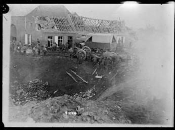| Keywords: blackandwhite monochrome photo border surreal black and white Shows the difficulty faced by New Zealand transport in moving around a huge mine crater in Fontaine, France during World War I. Soldiers attempt to shift a large wagon over unstable earth. A lorry is parked alongside. The building in the background has had its roof blown off. Photograph taken 12 October 1918 by Henry Armytage Sanders. Inscriptions: Inscribed - Photographer's title on negative -bottom centre: H1074. Quantity: 1 b&w original negative(s). Physical Description: Dry plate glass negative 4 x 5 inches New Zealand transport moving around a mine crater in France, World War I. Royal New Zealand Returned and Services' Association :New Zealand official negatives, World War 1914-1918. Ref: 1/2-013637-G. Alexander Turnbull Library, Wellington, New Zealand. natlib.govt.nz/records/22866983 Shows the difficulty faced by New Zealand transport in moving around a huge mine crater in Fontaine, France during World War I. Soldiers attempt to shift a large wagon over unstable earth. A lorry is parked alongside. The building in the background has had its roof blown off. Photograph taken 12 October 1918 by Henry Armytage Sanders. Inscriptions: Inscribed - Photographer's title on negative -bottom centre: H1074. Quantity: 1 b&w original negative(s). Physical Description: Dry plate glass negative 4 x 5 inches New Zealand transport moving around a mine crater in France, World War I. Royal New Zealand Returned and Services' Association :New Zealand official negatives, World War 1914-1918. Ref: 1/2-013637-G. Alexander Turnbull Library, Wellington, New Zealand. natlib.govt.nz/records/22866983 |