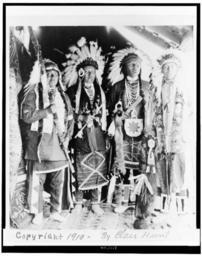 Keywords: NezPercéDanse3c08542v.jpg TITLE Four Nez Percé Indians dressed for dance on Colville Indian Reservation 1910 Copyright by Clair Hunt REPRODUCTION NUMBER LC-USZ62-108542 b w film copy neg PD-USGov Nez Perce Fur clothing of Nez Perce people