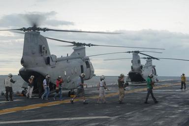 | Keywords: NGO's visit USS Iwo Jima DVIDS308210.jpg en Non-governmental organization personnel depart a U S Marine Corps CH-46E Sea Knight helicopter aboard the amphibious assault ship USS Iwo Jima during Continuing Promise 2010 The assigned medical and engineering staff embarked aboard Iwo Jima are working with partner nation teams to provide medical dental veterinary and engineering assistance to several different nations 2010-08-08 https //www dvidshub net/image/308210 100808-N-+++++-017 2010-08-10 09 47 USS IWO JIMA AT SEA PD-USGov-Military-Navy Continuing Promise 2010 Images from US Navy location Iwo Jima Japan Images from DoD uploaded by Fæ |