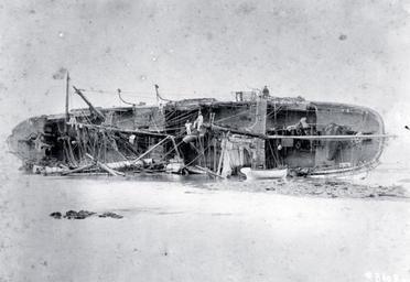 | Keywords: outdoor monochrome NH 42287: German Gunboat Adler. Overturned on the reef, on the western side of Apia Harbor, Upolu, Samoa, as crewmen began salvage work soon after the storm. Note men on her hull and upperworks, and canvas covered gun on her poop deck. Naval History and Heritage Command Photograph. (2016/01/03). NH 42287: German Gunboat Adler. Overturned on the reef, on the western side of Apia Harbor, Upolu, Samoa, as crewmen began salvage work soon after the storm. Note men on her hull and upperworks, and canvas covered gun on her poop deck. Naval History and Heritage Command Photograph. (2016/01/03). |
