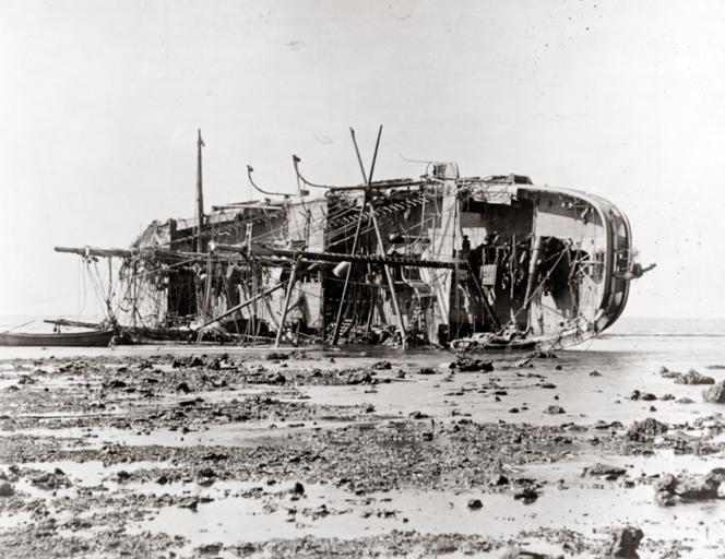 | Keywords: outdoor monochrome NH 42288: German Gunboat Adler. Overturned on the reef, on the western side of Apia Harbor, Upolu, Samoa, during salvage work after the storm. Note the gun mounted on her poop deck, and bent propeller shaft visible at her stern. Naval History and Heritage Command Photograph. (2016/01/03). NH 42288: German Gunboat Adler. Overturned on the reef, on the western side of Apia Harbor, Upolu, Samoa, during salvage work after the storm. Note the gun mounted on her poop deck, and bent propeller shaft visible at her stern. Naval History and Heritage Command Photograph. (2016/01/03). |