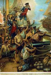 Keywords: surreal When Captain Pearson asked Jones to surrender, Jones replied, “I have not yet begun to fight!” Both sides tried to board the other’s ship but to no avail, but by 10:30 pm, Jones and the American sailors took Serapis, forcing the surrender from Captain Pearson. Captain John Paul Jones hailing HMS Serapis during the action from the deck of the frigate Bonhomme Richard, 23 September 1779. Artwork by Paul Moran. During the action, all firing ceased and for several moments Captain Pearson of the Serapis called out, "Have you struck your colors?" "I have not yet begun to fight," replied Captain Jones, were upon the firing resumed. Serapis later struck her colors. Lithograph by Haves Lithographing Co. NHHC Photograph Collection, NH 56757-KN (Color). When Captain Pearson asked Jones to surrender, Jones replied, “I have not yet begun to fight!” Both sides tried to board the other’s ship but to no avail, but by 10:30 pm, Jones and the American sailors took Serapis, forcing the surrender from Captain Pearson. Captain John Paul Jones hailing HMS Serapis during the action from the deck of the frigate Bonhomme Richard, 23 September 1779. Artwork by Paul Moran. During the action, all firing ceased and for several moments Captain Pearson of the Serapis called out, "Have you struck your colors?" "I have not yet begun to fight," replied Captain Jones, were upon the firing resumed. Serapis later struck her colors. Lithograph by Haves Lithographing Co. NHHC Photograph Collection, NH 56757-KN (Color).