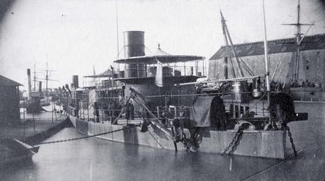 | Keywords: outdoor monochrome Washington Navy Yard, D.C. Ships moored in the Anacostia River off the Yard's waterfront, after the end of the Civil War, about 1865.The large twin-turret monitor in the center is Miantonomoh, with the smaller monitor Montauk tied up alongside her, to the left. In the left distance are the "light draft" monitor Chimo and the twin-turret monitor Tonawanda. The former Confederate ironclad Stonewall is beyond them. In the right distance is the Yard's western shiphouse. Ship at right is probably USS Resaca. The original print is mounted on a carte de visite produced by Christimo, 45 Rua de Quitanda, Rio de Janeiro, Brazil. Courtesy of Mrs. W.E. Taylor, 1941, from the collection of Medical Inspector William E. Taylor, USN. NHHC Photograph Collection: NH 58936. Washington Navy Yard, D.C. Ships moored in the Anacostia River off the Yard's waterfront, after the end of the Civil War, about 1865.The large twin-turret monitor in the center is Miantonomoh, with the smaller monitor Montauk tied up alongside her, to the left. In the left distance are the "light draft" monitor Chimo and the twin-turret monitor Tonawanda. The former Confederate ironclad Stonewall is beyond them. In the right distance is the Yard's western shiphouse. Ship at right is probably USS Resaca. The original print is mounted on a carte de visite produced by Christimo, 45 Rua de Quitanda, Rio de Janeiro, Brazil. Courtesy of Mrs. W.E. Taylor, 1941, from the collection of Medical Inspector William E. Taylor, USN. NHHC Photograph Collection: NH 58936. |