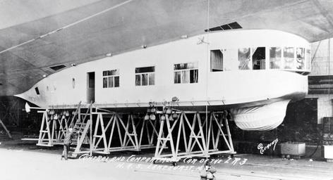 | Keywords: blackandwhite monochrome black and white NH 67775: USS Los Angeles (ZR-3). View of the airship's control car, taken while she was resting in the airship hangar at Naval Air Station Lakehurst, New Jersey, circa 1925. Note sandbag weights used to keep the airship from lifting off the wooden supporting structure. Photographed by Clements. Courtesy of Commander Robert L. Ghormley, Jr., USN(SC)-Retired, 1969. NHHC Photograph Collection. (2016/01/02). NH 67775: USS Los Angeles (ZR-3). View of the airship's control car, taken while she was resting in the airship hangar at Naval Air Station Lakehurst, New Jersey, circa 1925. Note sandbag weights used to keep the airship from lifting off the wooden supporting structure. Photographed by Clements. Courtesy of Commander Robert L. Ghormley, Jr., USN(SC)-Retired, 1969. NHHC Photograph Collection. (2016/01/02). |
