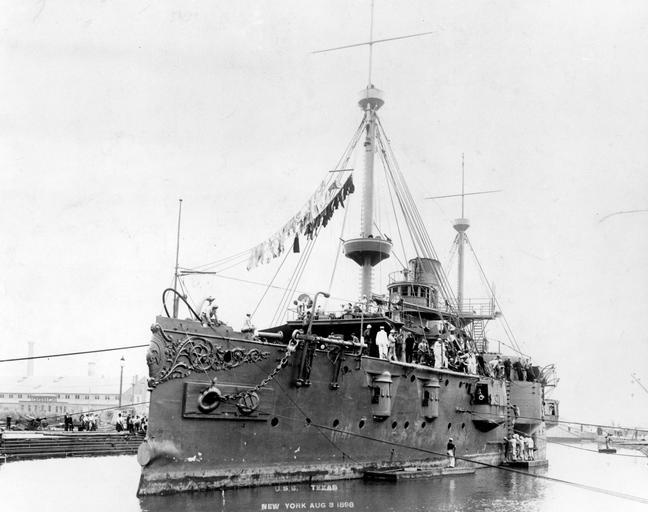 | Keywords: blackandwhite monochrome black and white NH 74104: USS Texas (1895-1911). Ready for post-war drydocking, at the New York Navy Yard, 3 August 1898. . Naval History and Heritage Command Photograph. (2016/01/17). NH 74104: USS Texas (1895-1911). Ready for post-war drydocking, at the New York Navy Yard, 3 August 1898. . Naval History and Heritage Command Photograph. (2016/01/17). |