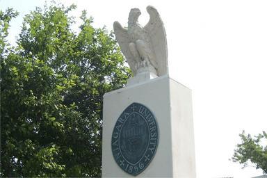 Keywords: Niagara Univ main entrance column.jpg en Seal of Niagara University and eagle at main entrance own Banderas Niagara University