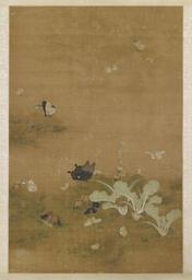 | Keywords: Nianyi -Nien-I- - Cabbages and Butterflies - Walters 3525.jpg In China the butterfly can be a symbol of happiness in marriage This comes from a story told by the Daoist philosopher Zhuangzi Chuang-tzu in which a young student chases a butterfly into the garden of a retired official There he sees the official's daughter and is so taken with her beauty and charm that he vows to dedicate himself to his work so that he may one day marry her His hard work not only wins him his bride but also results in his obtaining a high-ranking position century 15 16 ink color silk cm 89 2 55 8 accession number 35 25 22764 Panama-Pacific International Exposition China Pavilion San Francisco 1915 no 163 Henry Walters city Baltimore Walters Art Museum Henry Walters Acquired by Henry Walters 1915 Inscription Bottom right; Seal Bottom right place of origin China Walters Art Museum license 2D Chinese paintings in the Walters Art Museum Media from the Walters Art Museum no creator template Butterflies in Chinese art Cabbage in art |
