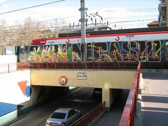 | Keywords: Nicasio22.jpg es Mural en la tapia que delimita la vía del ferrocarril de cercanías C-5 en la salida del barrio de San Nicasio Leganés Comunidad de Madrid own Chaluco 2010-01-09 San Nicasio Leganés Rail transport in Leganés RENFE Class 446 2010 in rail transport in the Community of Madrid |