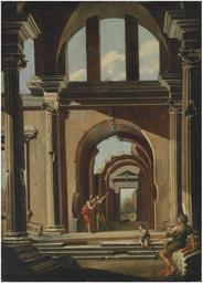 View Original:Niccolò Codazzi - An architectural capriccio with figures beneath an arch.jpg (780x1086)