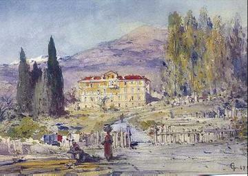 | Keywords: Nice-Carabacel--Histoire-VillaTiranty1750.jpg La villa Tiranty située approximativement vers l'actuelle rue Gioffredo Tableau des années 1750s Au premier plan le Paillon sur la gauche le vallon Saint-Michel recouvert pour la future avenue Jean-Medecin actuelle On rêve Tableau au Musée Masséna ~ 1750 unknown impossible to read the name Own work all rights released Public domain Watercolor paintings of landscapes Watercolor paintings of houses Landscape paintings of France Historical images of Nice 1750 Palais de Nice 1750s watercolor paintings Nice in art |