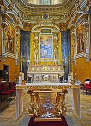 Keywords: nice cathedral main altar palatial italian baroque house of worship places of interest historically south of france old town côte d ' azur architecture catholic cathédrale sainte réparate gold leaf church ornately church room