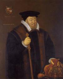 | Keywords: Nicholas Bacon (1509-1579), English School.jpg en Nicholas Bacon 1509-1579 holding his rod of office and the purse of the Great Seal emblazoned upper left with the sitter's coat-of-arms and inscribed MEDIOCRIA FIRMA / SIR NICHOLAS BACON and upper right 15-9 / ÆT - 68 and inscribed on frame verso Sir N Bacon oil on canvas 126 by 103 5 cm http //www sothebys com/app/live/lot/LotDetail jsp lot_id 159635865 Sotheby's English School Mid 17th century PD-old-100 17th-century oil portraits of standing men at three-quarter length Nicholas Bacon Images from Sotheby's Male fur clothing in art Marten clothing in art 17th-century portraits with coat of arms Ruffs in art male 17th-century men looking at viewer in art Paintings with signatures Paintings with years of production artist 17th-century fur fashion |