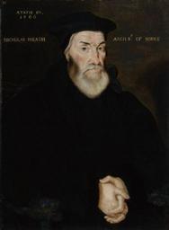 | Keywords: hats and head-attire hatsandheadattire london, st martin's place, wc2 0he londonstmartinsplacewc20he united kingdom unitedkingdom people monochrome Nicholas Heath (c. 1501 – 1578) was archbishop of York and Lord Chancellor. Heath was born in London and graduated BA at Oxford in 1519. He then migrated to Christ's College, Cambridge, where he graduated BA in 1520, MA in 1522, and was elected fellow in 1524.[1] After holding minor preferments he was appointed archdeacon of Stafford in 1534 and graduated DD in 1535. He then accompanied Edward Fox, bishop of Hereford, on his mission to promote a theological and political understanding with the Lutheran princes of Germany. His selection for this duty implies a readiness on Heath's part to proceed some distance along the path of reform; but his dealings with the Lutherans did not confirm this tendency, and Heath's subsequent career was closely associated with the cause of reaction. In 1539, the year of the Six Articles, he was made bishop of Rochester, and in 1543 he succeeded John Bell at Worcester. His Catholicism, however, was of a less rigid type than Gardiner's and Bonner's; he felt something of the force of the national antipathy to foreign influence, whether ecclesiastical or secular, and was always impressed by the necessity of national unity, so far as was possible, in matters of faith. Apparently he made no difficulty about carrying out the earlier reforms of Edward VI, and he accepted the first book of common prayer after it had been modified by the House of Lords in a Catholic direction. His definite breach with the English Reformation occurred on the grounds, on which four centuries later Leo XIII claimed that the Anglican priesthood was not valid. The question was over the Ordinal drawn up in February 1550. Heath refused to accept it, was imprisoned, and in 1551 deprived of his bishopric. On Mary's accession he was released and restored, and made president of the Council of the Marches and Wales. In 1555 he was promoted to the archbishopric of York, which he did much to enrich; he built York House in the Strand. After Gardiner's death he was appointed lord chancellor, probably on Reginald Cardinal Pole's recommendation; for Heath, like Pole himself, disliked the Spanish party in England. Unlike Pole, however, he seems to have been averse from the excessive persecution of Mary's reign, and no one was burnt in his diocese. He exercised, however, little influence on Mary's secular or ecclesiastical policy. On Mary's death Heath as chancellor at once proclaimed Elizabeth. Like Sir Thomas More he held that it was entirely within the competence of the national state, represented by parliament, to determine questions of the succession to the throne; and although Elizabeth did not renew his commission as Lord Chancellor, he continued to sit in the privy council for two months until the government had determined to complete the breach with the Roman Catholic Church; and as late as April 1559 he assisted the government by helping to arrange the Westminster Conference, and reproving his more truculent co-religionists. He refused to crown Elizabeth because she would not have the coronation service accompanied with the elevation of the Host; and ecclesiastical ceremonies and doctrine could not, in Heath's view, be altered or abrogated by any mere national authority. Hence he steadily resisted Elizabeth's acts of supremacy and uniformity, although he had acquiesced in the acts of 1534 and 1549. Like others of Henry's bishops, he had been convinced by the events of Edward VI's reign that Sir Thomas More was right and Henry VIII was wrong in their attitude towards the claims of the papacy and the Roman Catholic Church. He was therefore necessarily deprived of his archbishopric in 1559, but he remained loyal to Elizabeth; and after a temporary confinement he was suffered to pass the remaining nineteen years of his life in peace and quiet, never attending public worship and sometimes hearing mass in private. The queen visited him more than once at his house at Chobham, Surrey; he died and was buried there at the end of 1578. by Hans Eworth,painting,1566 Nicholas Heath (c. 1501 – 1578) was archbishop of York and Lord Chancellor. Heath was born in London and graduated BA at Oxford in 1519. He then migrated to Christ's College, Cambridge, where he graduated BA in 1520, MA in 1522, and was elected fellow in 1524.[1] After holding minor preferments he was appointed archdeacon of Stafford in 1534 and graduated DD in 1535. He then accompanied Edward Fox, bishop of Hereford, on his mission to promote a theological and political understanding with the Lutheran princes of Germany. His selection for this duty implies a readiness on Heath's part to proceed some distance along the path of reform; but his dealings with the Lutherans did not confirm this tendency, and Heath's subsequent career was closely associated with the cause of reaction. In 1539, the year of the Six Articles, he was made bishop of Rochester, and in 1543 he succeeded John Bell at Worcester. His Catholicism, however, was of a less rigid type than Gardiner's and Bonner's; he felt something of the force of the national antipathy to foreign influence, whether ecclesiastical or secular, and was always impressed by the necessity of national unity, so far as was possible, in matters of faith. Apparently he made no difficulty about carrying out the earlier reforms of Edward VI, and he accepted the first book of common prayer after it had been modified by the House of Lords in a Catholic direction. His definite breach with the English Reformation occurred on the grounds, on which four centuries later Leo XIII claimed that the Anglican priesthood was not valid. The question was over the Ordinal drawn up in February 1550. Heath refused to accept it, was imprisoned, and in 1551 deprived of his bishopric. On Mary's accession he was released and restored, and made president of the Council 