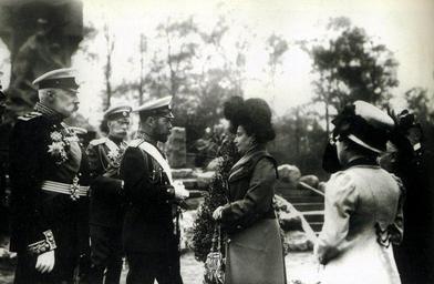 | Keywords: Nicholas II at the monument to team of destroyer "Stereguschy" opening, 1911-05-09.jpg en Emperor Nicholas II at the opening ceremony of the monument team destroyer Stereguschy means as Guarding Present Comrade Secretary of the Navy Vice Admiral IK Grigorovich 1 st left Baron VB Fredericks 2 nd left widow of the commander of the destroyer center St Petersburg May 9 April 26 at old style 1911 ru Импе ато иколай II на це емонии отк ытия памятника команде миноносца Сте егущий П исутствуют това ищ мо ского минист а вице-адми ал И К Г иго ович 1-й слева ба он В Б Ф еде икс 2-й слева вдова команди а миноносца в цент е Санкт-Пете бу г 26 ап еля 9 мая 1911 года http //picasaweb google com/lh/photo/x0Q907HeAXz8F13RL1TzSMsyJZHRYj5AhM865yXn6bA author Julian 1911-05-09 1911-04-26 PD-RusEmpire Stereguschemu Monument Nicholas II of Russia in 1911 in photographs Vladimir Frederiks Ivan Konstantinovich Grigorovich 1911 in Saint Petersburg |