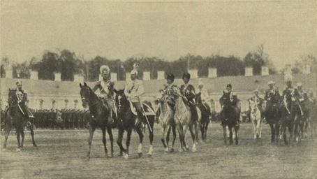| Keywords: Nicholas II of Russia and Prince August Wilhelm of Prussia on military parade.jpeg ru Па ад войскам ца скосельского га низона 7 мая в Ца ском Селе в честь ге манского к онп инца иколай II и ге манский наследный п инц после объезда пост оения войск 1911-05-07 Газета « овое В емя» за май 1911 года 12632 Ка л Булла PD-old-100 Uploaded with UploadWizard Nicholas II of Russia in 1911 in photographs William German Crown Prince 19110507Photographs by Karl Bulla | ||||