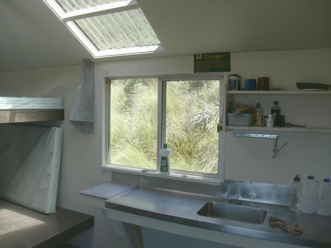 Keywords: Nichols hut 6.jpg Nichols hut W Tararua Range Tararua ; bunks and kitchen 2016-01-06 Own Sarang Nichols Hut