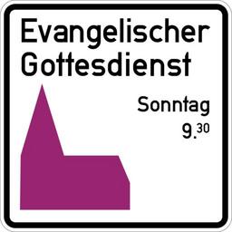 | Keywords: Nichtamtliches Hinweiszeichen - Evangelischer Gottesdienst.svg de Hinweiszeichen Evangelischer Gottesdienst; Sinnbild in RAL Verkehrspurpur Nicht in der StVO aufgeführt aber vom Bundesverkehrsministerium veröffentlichtes Zeichen own selbst gezeichnet von Mediatus Mediatus 15 August 2013 Herstellungsdatum + Signs User Mediatus/no-new-version Cc-zero Diagrams of miscellaneous road signs of Germany 1971 set Church signs in Germany Symbols of Protestantism Church-related road signs Diagrams of road signs of Germany SVG road signs in Germany German language signs |