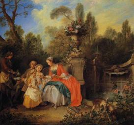 | Keywords: Nicolas Lancret - A Lady and Gentleman Taking Coffee with Children in a Garden.JPG Artwork creator Nicolas Lancret A Lady and Gentleman Taking Coffee with Children in a Garden probably 1742 oil canvas cm 88 9 97 8 credit line Bequeathed by Sir John Heathcoat Amory with life interest to Lady Amory by whom presented 1973 accession number NG6422 Museum National Gallery London cite web http //www nationalgallery org uk/paintings/nicolas-lancret-a-lady-in-a-garden-taking-coffee-with-some-children/ /key-facts Key facts 2010-09-18 source other versions PD-old-100 Nicolas Lancret 1742 paintings Rococo paintings in the National Gallery London Garden vases in art French paintings in the National Gallery London 18th-century way of life 18th-century childhood in painting |