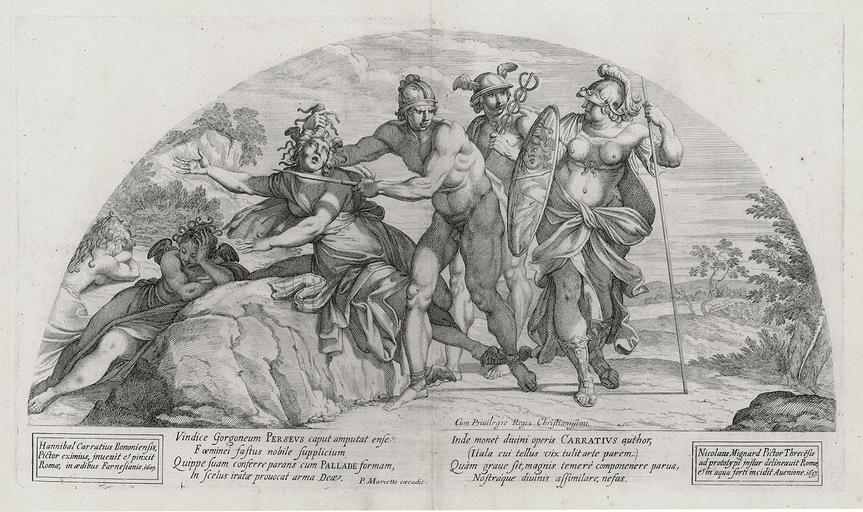 | Keywords: Nicolas Mignard, Perseus and Medusa after Annibale Carracci.jpg century 17 Engraving Size cm object history exhibition history credit line place of creation http //neartexchange com/sites/default/files/images/mignard_perseus jpg accession number PD-old-100 Uploaded with UploadWizard Nicolas Mignard Camerino Farnese Annibale Carracci Engravings after Annibale Carracci Annibale Carracci | ||||