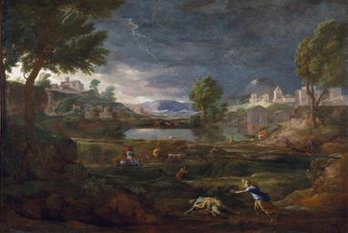 | Keywords: Nicolas Poussin - Paysage orageux avec Pyrame et Thisbé.jpg Artwork Q14508085 de Landschaft mit Pyramos und Thisbe Paysage orageux avec Pyrame et Thisbé oil canvas cm 192 5 273 5 Städel Landschaftsmalerei The Yorck Project 10 000 Meisterwerke der Malerei DVD-ROM 2002 ISBN 3936122202 Distributed by DIRECTMEDIA Publishing GmbH 1651 object history Peint pour Cassiano dal Pozzo Acquis par le musée en 1931 Creator Nicolas Poussin http //mail wikipedia org/pipermail/wikide-l/2005-April/012195 html Other versions PD-old-100 PD-Art-YorckProject French paintings in the Städel Baroque paintings in the Städel 1650s paintings in the Städel 1651 works in Frankfurt am Main 1651 paintings in Hesse Pyramus and Thisbe Mythological subjects by Nicolas Poussin Landscape paintings by Nicolas Poussin 1650s landscape paintings 1650s paintings from France |