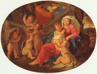 | Keywords: Nicolas Poussin - Sainte Famille (aux anges).jpg Artwork de Heilige Familie mit Engeln Oval Oil on canvas cm 57 74 Budapest The Yorck Project 10 000 Meisterwerke der Malerei DVD-ROM 2002 ISBN 3936122202 Distributed by DIRECTMEDIA Publishing GmbH c 1625 1630 After http //mail wikipedia org/pipermail/wikide-l/2005-April/012195 html Other versions PD-old-100 PD-Art-YorckProject Baroque paintings of Madonna and Child Paintings after Nicolas Poussin Paintings of Holy Family with John the Baptist 17th-century oil paintings of people oval paintings of people 17th-century paintings in the Budapest Museum of Fine Arts 17th-century paintings of Holy Family 17th-century religious paintings in Hungary |