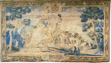 | Keywords: Nieśwież manufacture tapestry.JPG Inspection of the troops near Zabłudów by Michał Kazimierz Radziwiłł Rybeńko Przegląd wojsk pod Zabłudowem przez Michała Kazimierza Radziwiłła Rybeńko tapestry cm 329 349 Kraków Institution Czartoryski Museum Object history ProvenanceEvent 1752 commission Michał Kazimierz Radziwiłł Rybeńko for the Niasvizh Castle Tadeusz Chruścicki Franciszek Stolot 1994 Muzea Krakowa Arkady ISBN 83-21336-99-X Anastazja Markiewiczowa Niasvizh manufacture after design by Ksawery Dominik Heske d 1764 s 1750 Copyright expired PD-Art Other versions PD-old-100 Applied arts in the Czartoryski Museum History of the Niasviž Castle Michał Kazimierz Radziwiłł Rybeńko Zabłudów Horse riding in art Textiles of Poland 18th-century textiles |