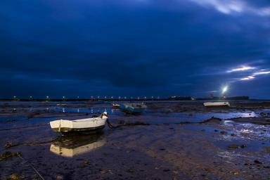 Keywords: night beach cadiz landscape sea barca nature tide bridge castle