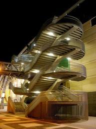 Keywords: night evening lights lighting city cities urban sky buildings architecture stairs steps stairway walkway steel metal beautiful outside