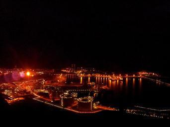 Keywords: night lights refinery fire flame city sea reflection reflect reflected harbour harbor port seaport urban dark technology industry construction industrial modern engineering