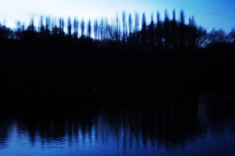 Keywords: night pond trees landscape out of focus lake reflection terror fear cold terrifying forest arboleda nature